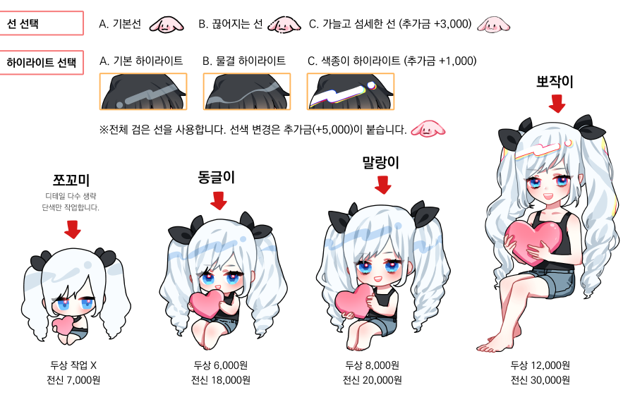 ✿러프, 단색 등 타입에 없는 작업은 따로 문의 가능합니다.