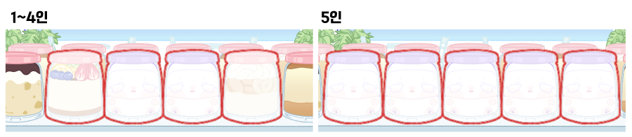 ❀편집 1장당 푸딩은 1~4개를 권장하며, 5개는 푸딩 진열 배치를 바꾸어 편집합니다.